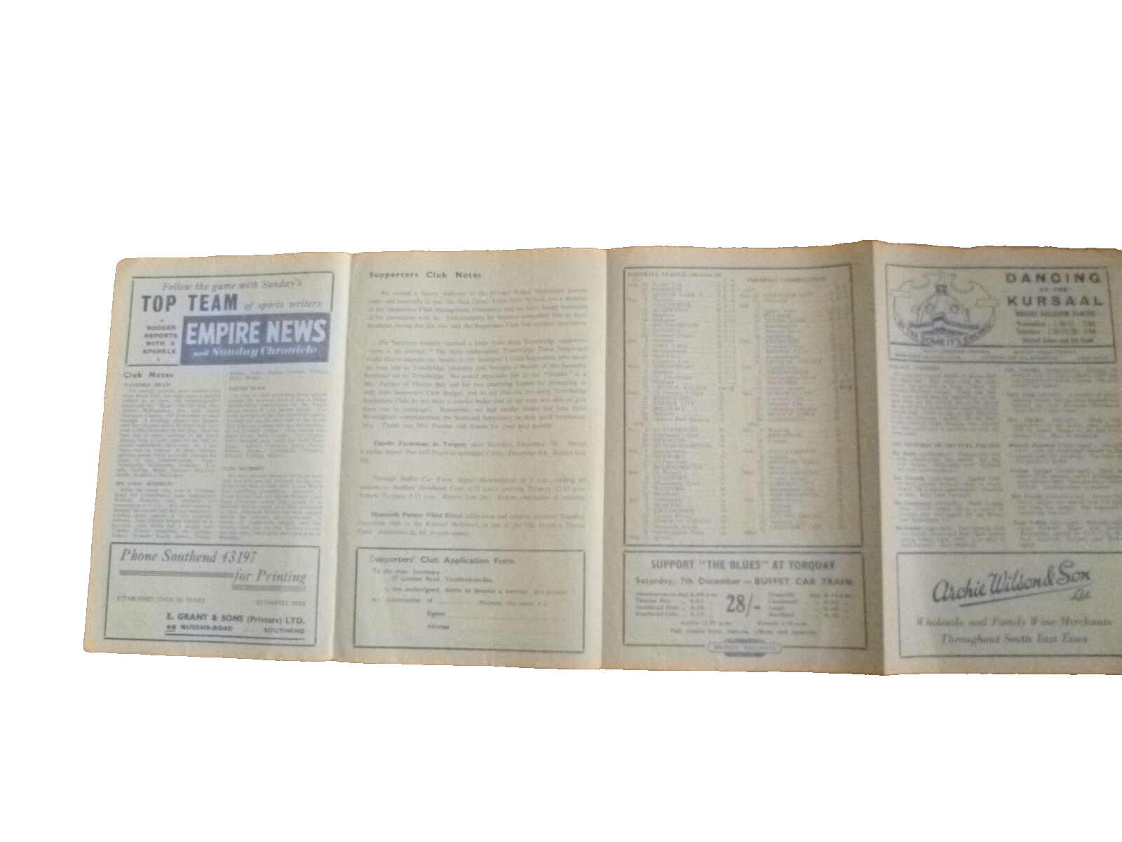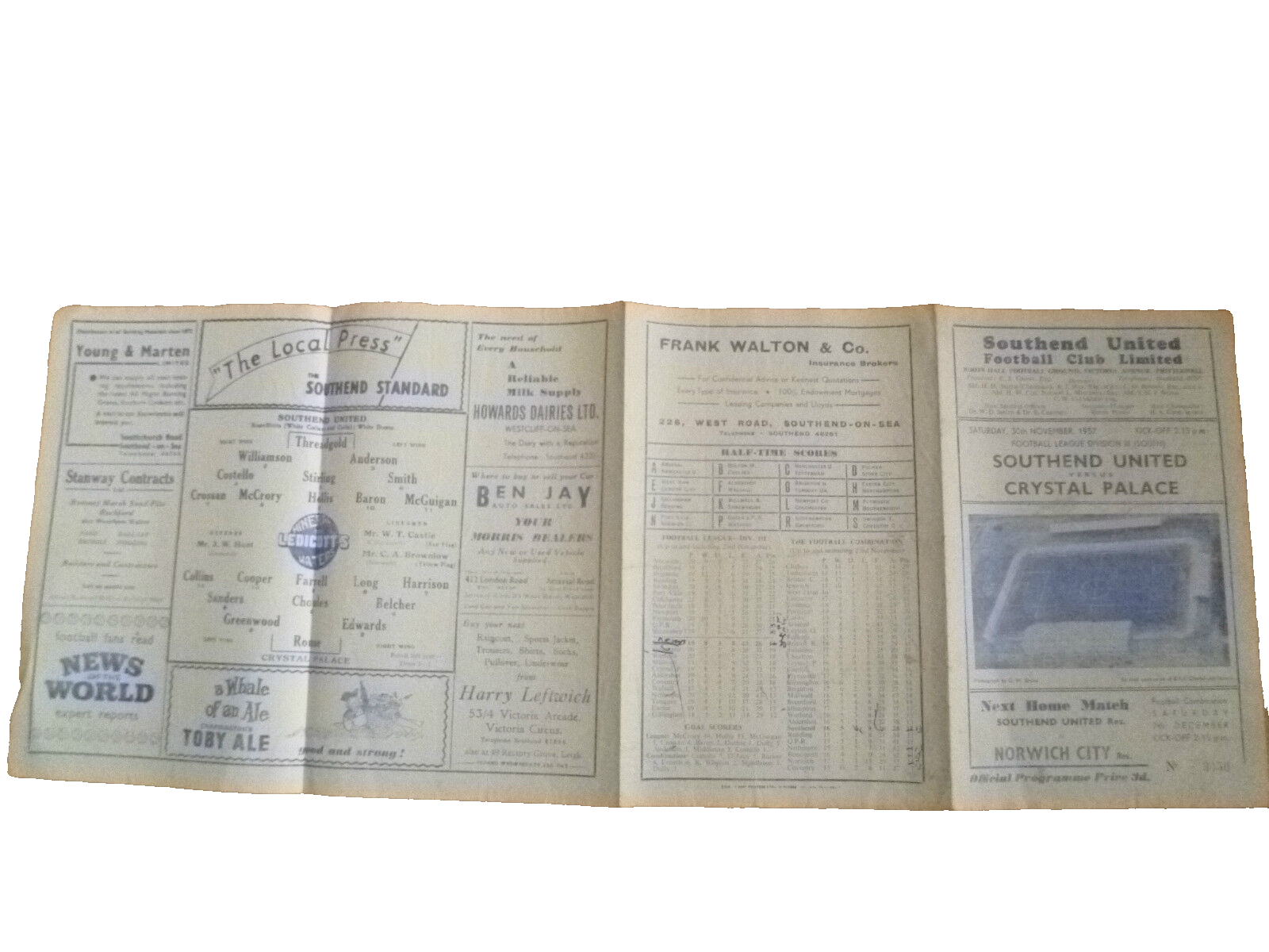 You are purchasing very collectable & Original football Programme of – League Division III (South)- SOUTHEND UNITED v CRYSTAL PALACE 30th November 1957