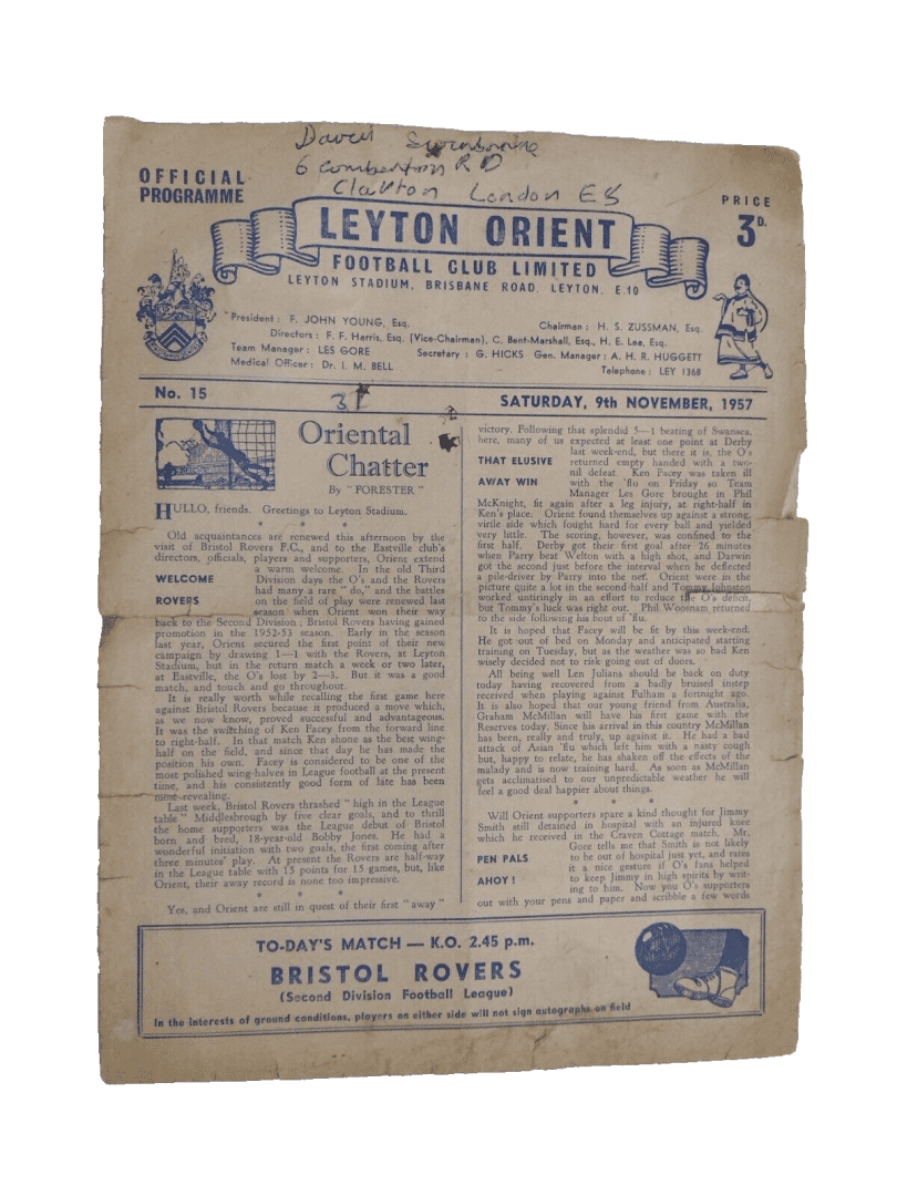 Be the first to review “1957 Leyton Orient v Bristol Rovers 9th November 2nd Division Football League” Cancel reply