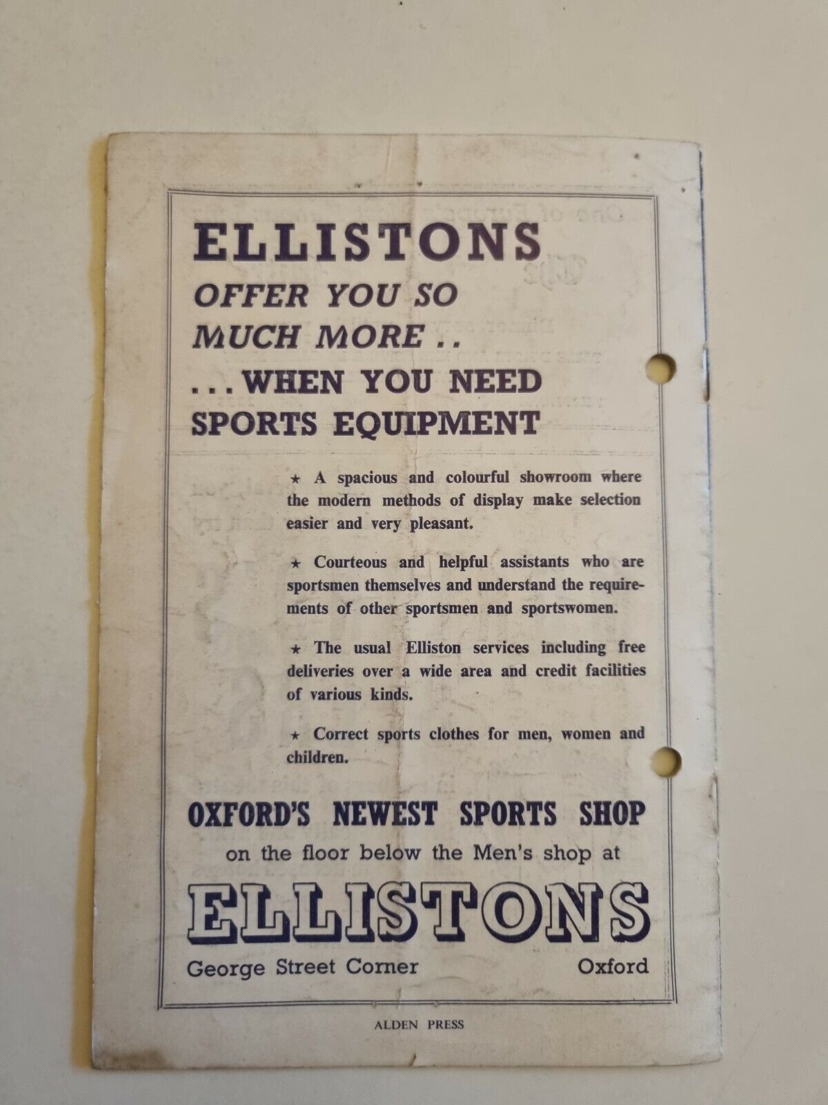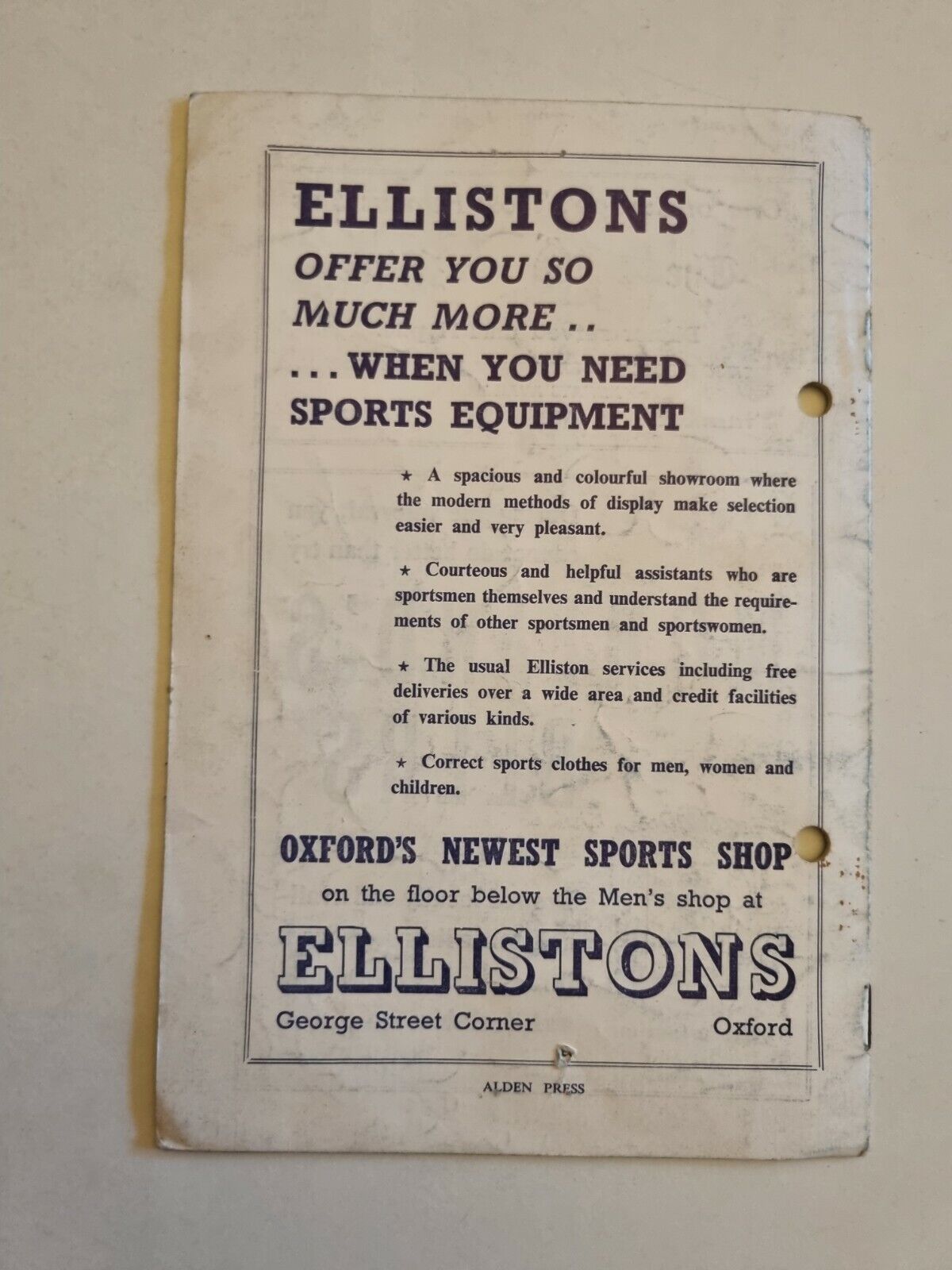 "This lovely Programme has punch holes, otherwise remains in very good condition for its age. Please see the picture as it forms part of the description.."