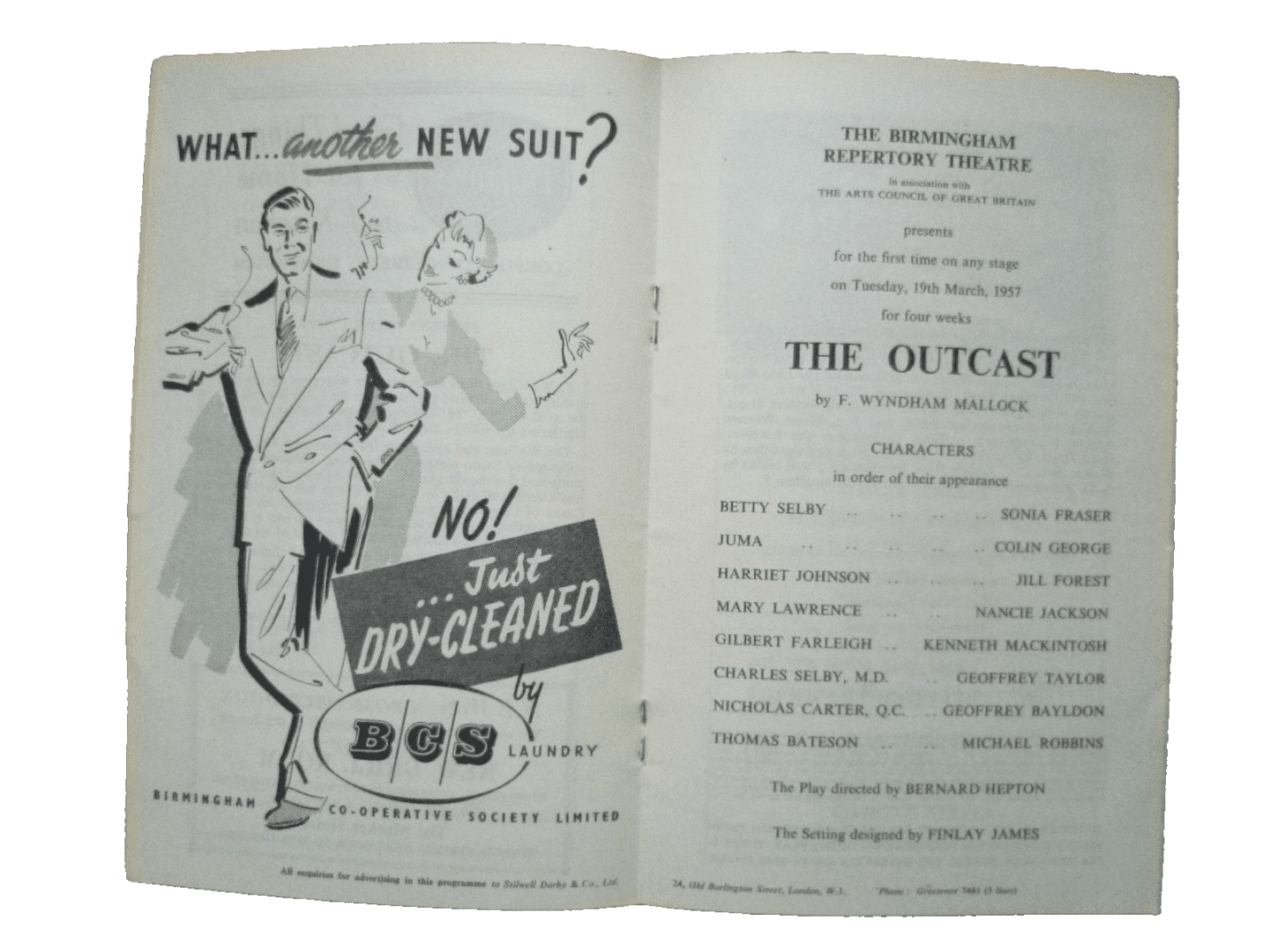 1957 Theatre Programme The Outcast – Sonia Fraser Colin George Jill Forest