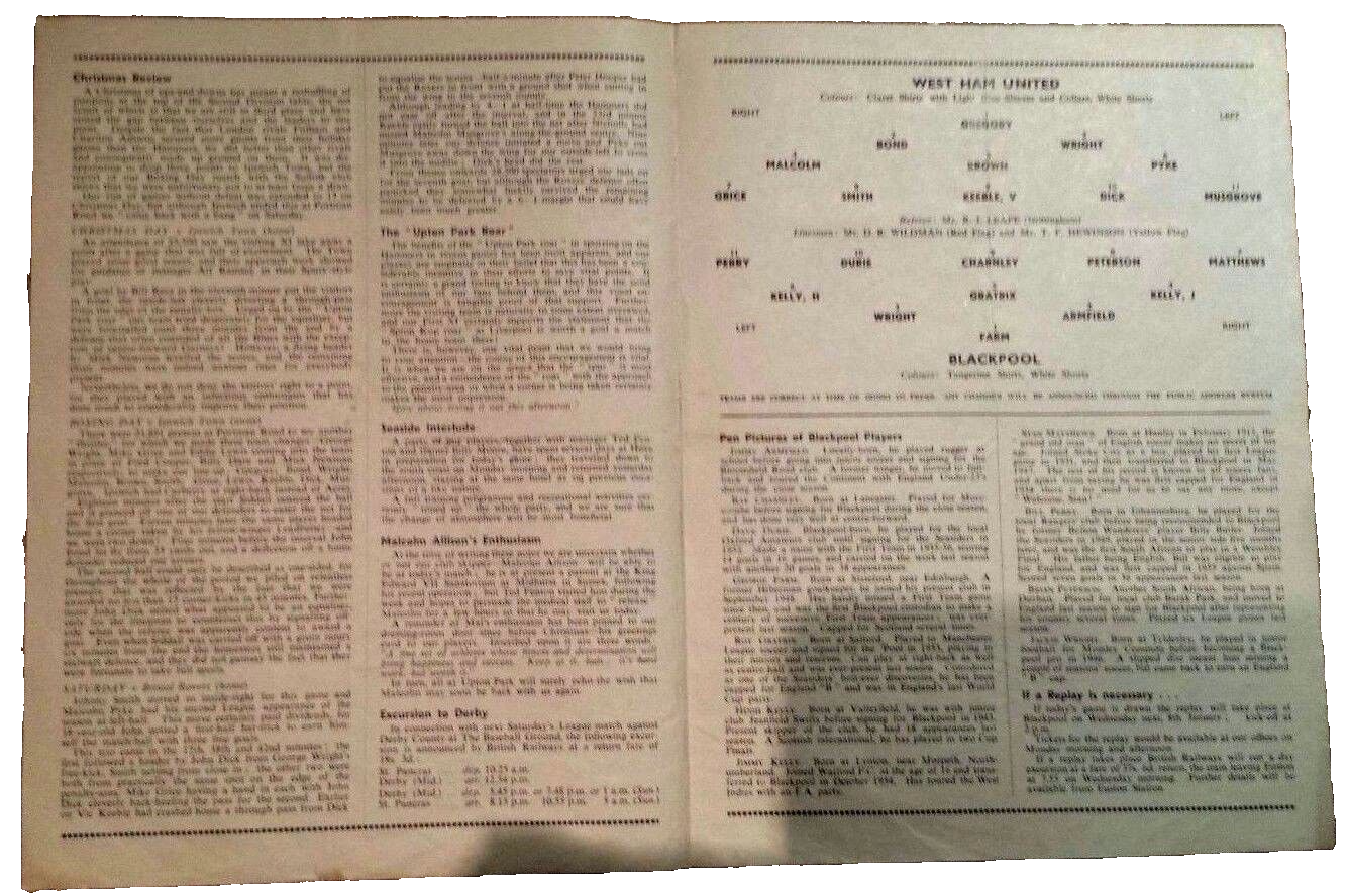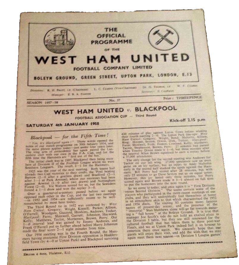 1958 FA Cup West Ham United v Blackpool 3rd Round – 4th January