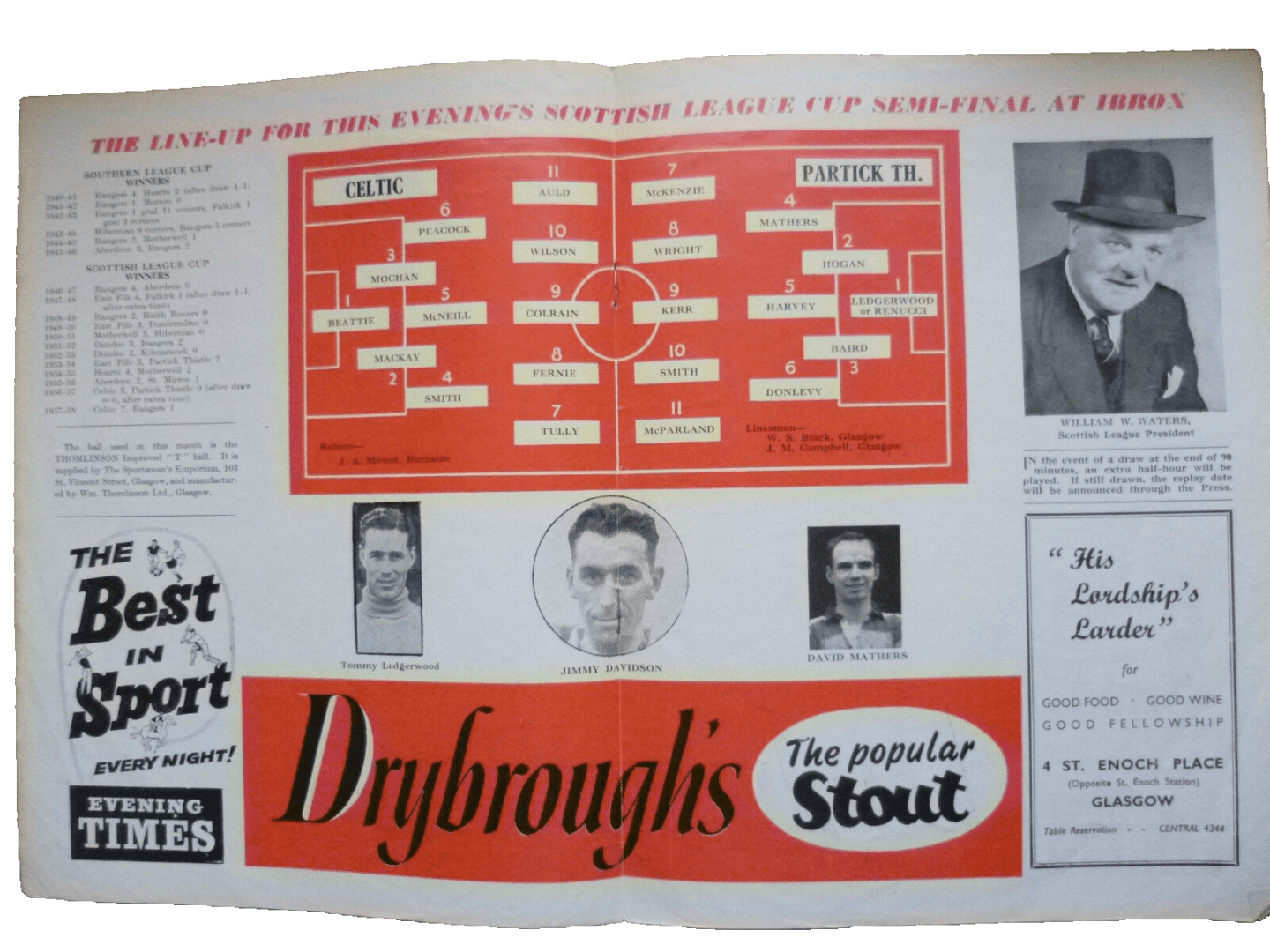 1958 Scottish League Cup Semi Final Celtic v Partick Thistle 1st October