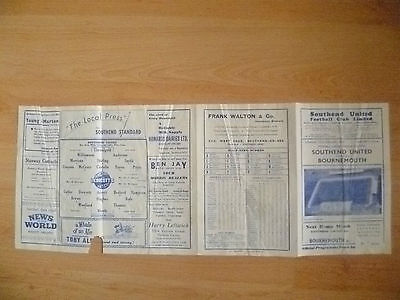 1958 SOUTHEND UNITED v BOURNEMOUTH League Division III South 22nd Feb 1958