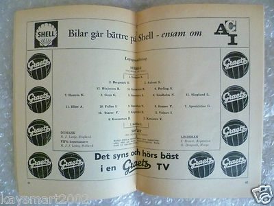 1958 Sweden v Russia19 June World Cup Quarter Final Programme Original Exc Con