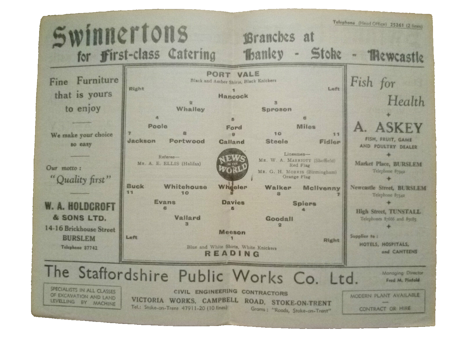 1960/61 Port Vale v Reading, 17th September