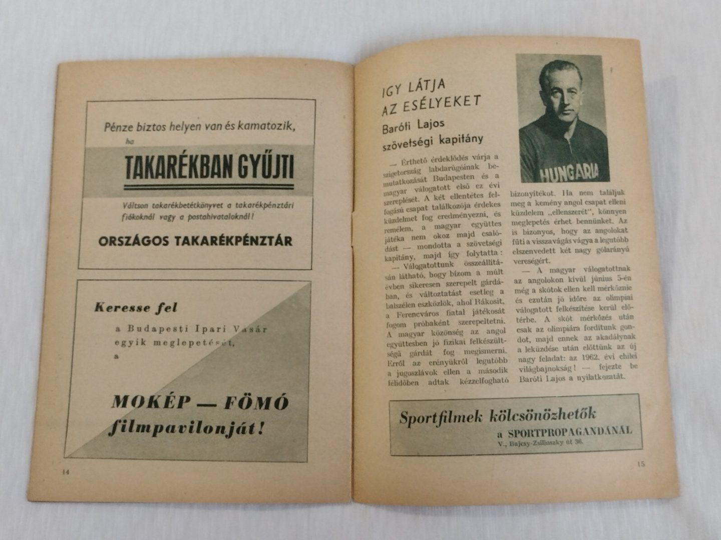 1960 Hungary v England 22 May Official Football Programme Very Good Condition