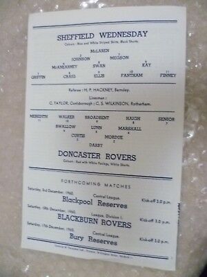 1960 SHEFFIELD WEDNESDAY v DONCASTER ROVERS, 29th Nov (County Cup Semi Final)