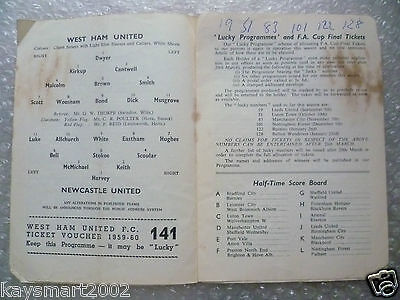 1960 WEST HAM UNITED v NEWCASTLE UNITED, 20th Feb (League Division One)