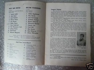 1962 League Division 1- WEST HAM UNITED v BOLTON WANDERERS, 3 Nov