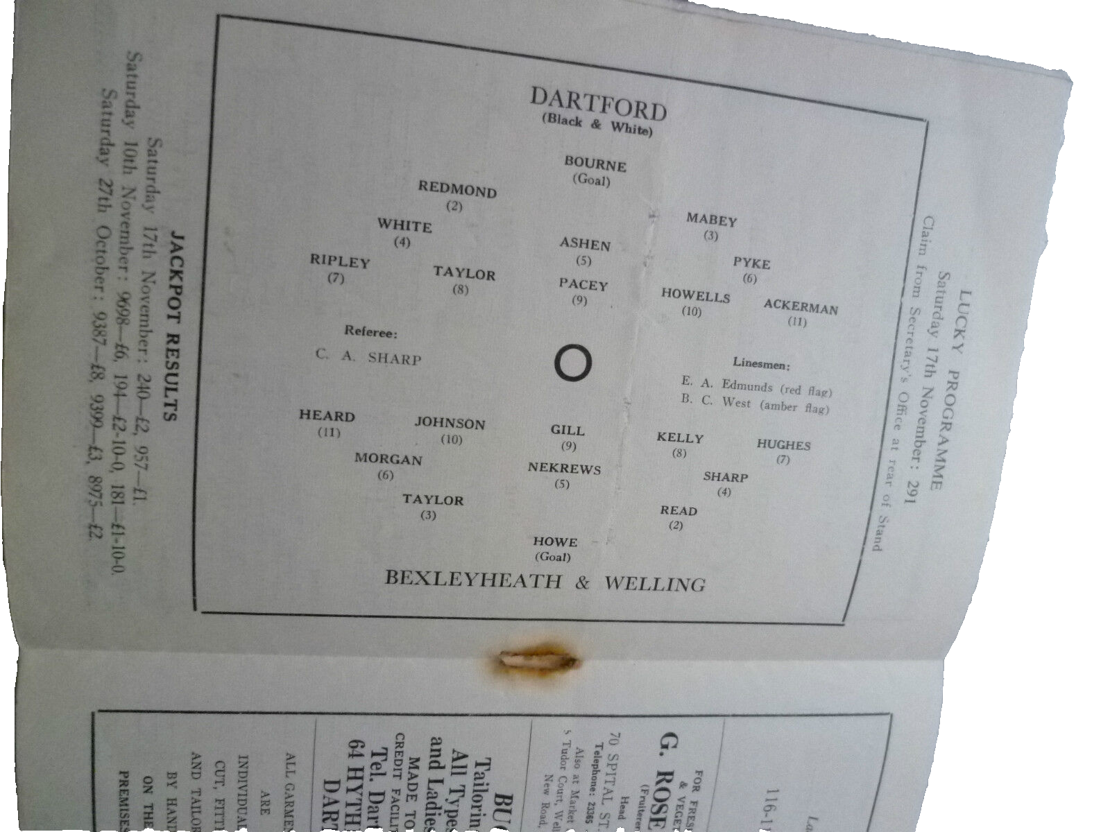 1962 Southern League Dartford v Bexleyheath & Welling 24 November