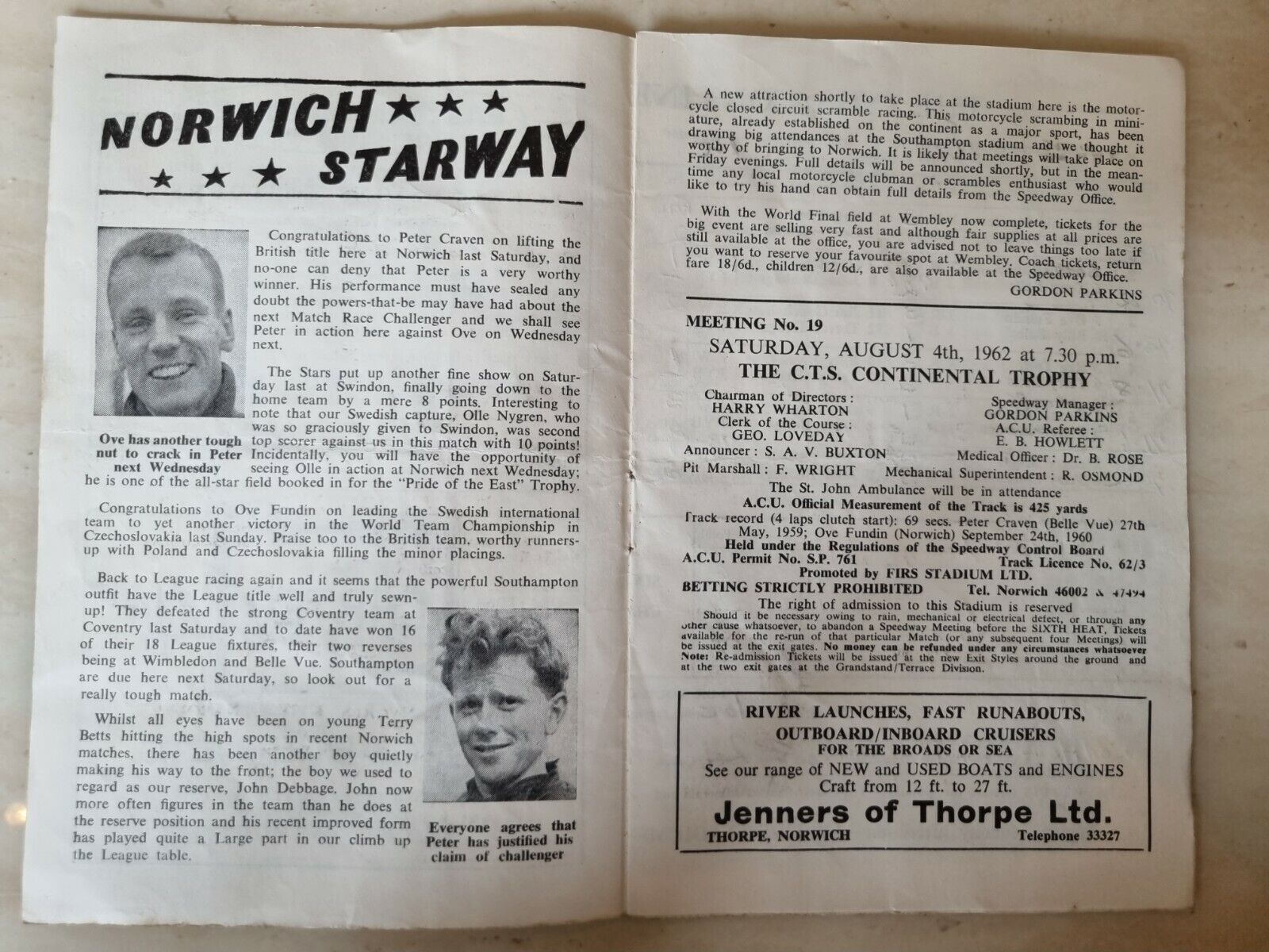 I am selling a special collection of vintage Speedway, football and Theatre memorabilia. This is a wonderful, interesting and collectable item for any Sports Enthusiasts.