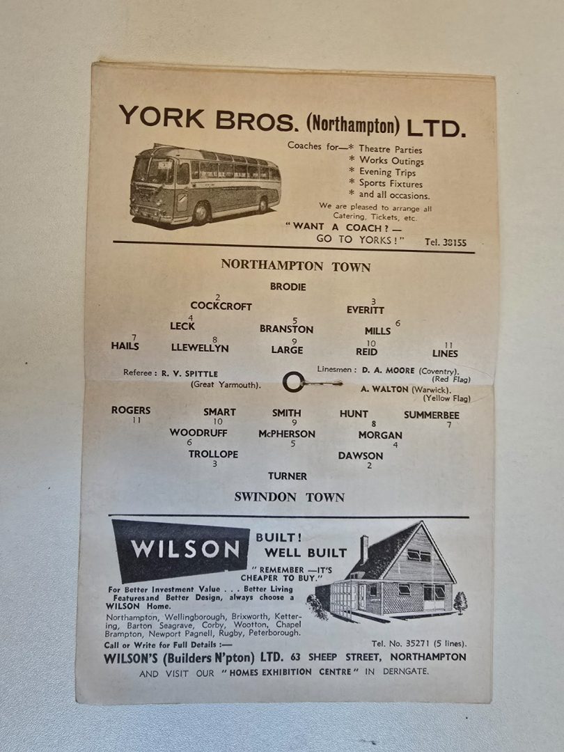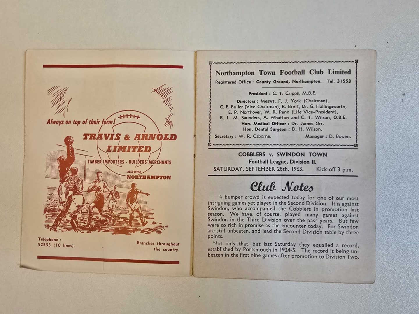 1963/64 Football Programme Northampton Town v Swindon Town – 28th September