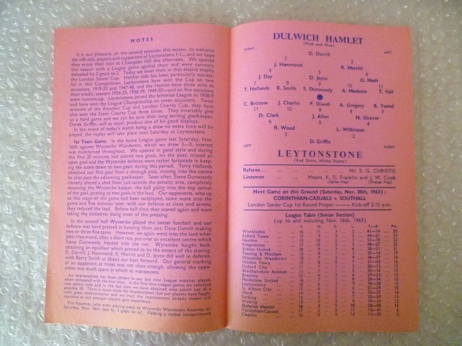 1963 DULWICH HAMLET v LEYTONSTONE, 23rd Nov (London Senior Cup)