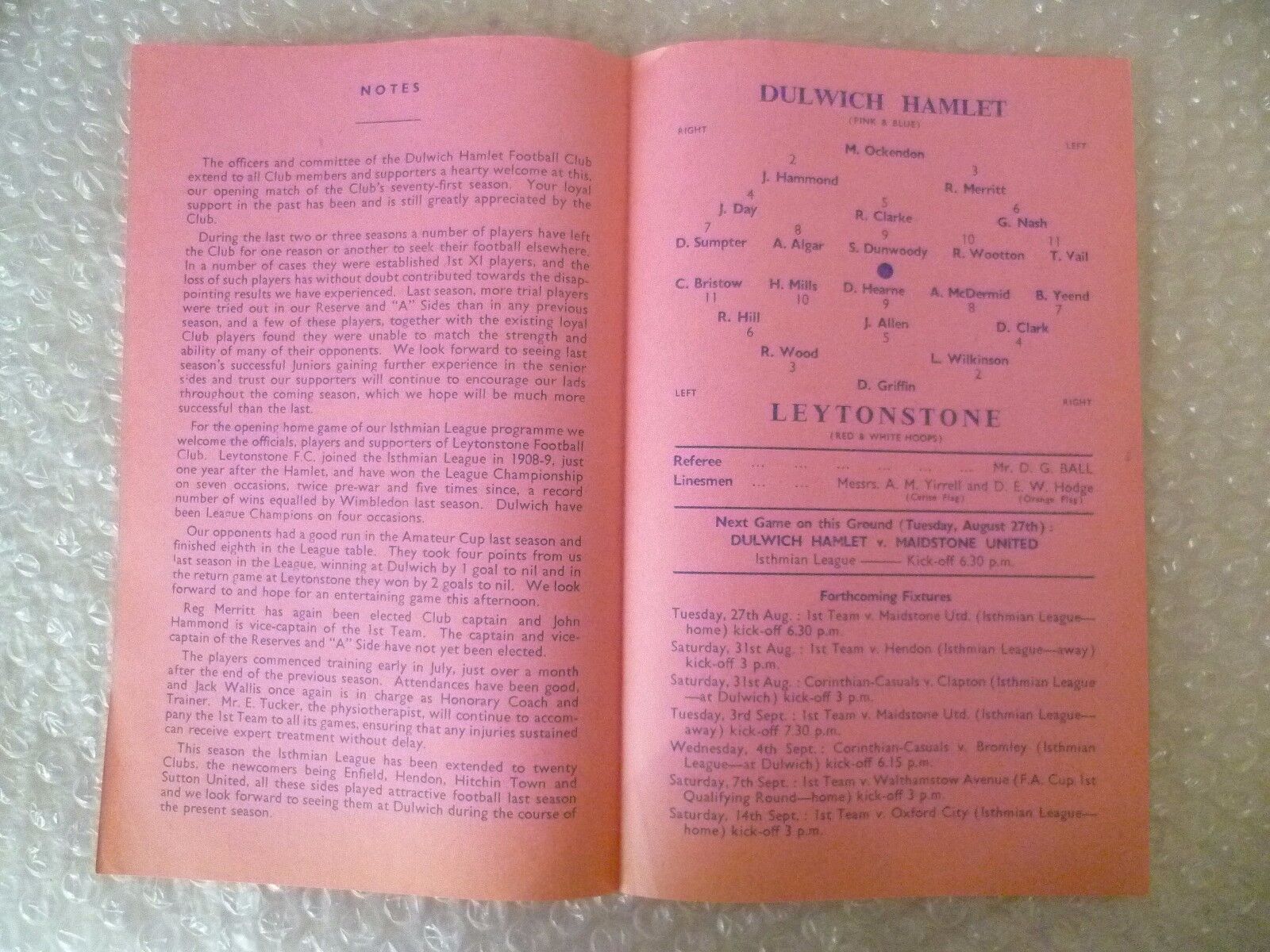 1963 DULWICH HAMLET v LEYTONSTONE, 24th Aug (Isthmian League)
