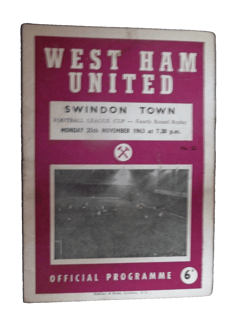 are purchasing the official football programme of: 1963 League CUP 4th RD REPLAY- WEST HAM UNITED v SWINDON TOWN, 25th November