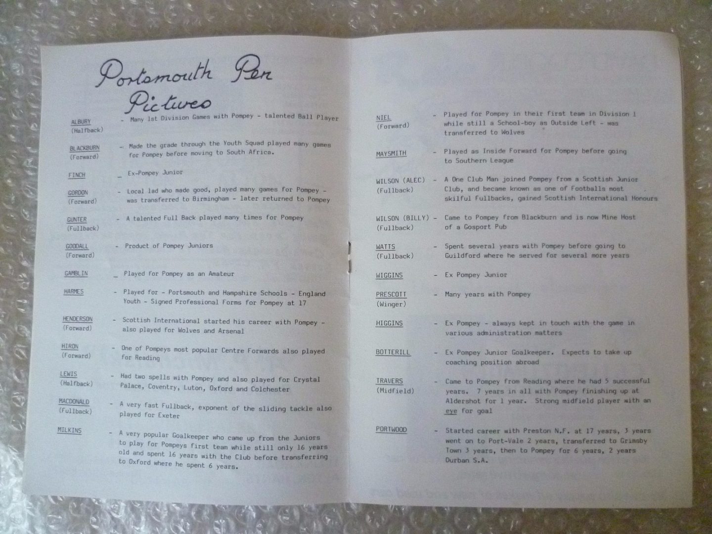 1963 Portsmouth Ex Pro’s v Greyfriar, Charity Match 22nd August