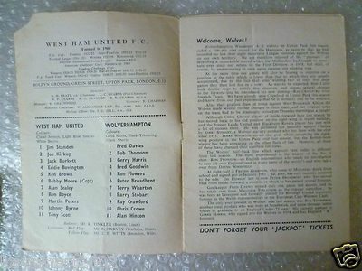1963 WEST HAM UNITED v WOLVERHAMPTON WANDERERS, 5th Oct (League Division One)