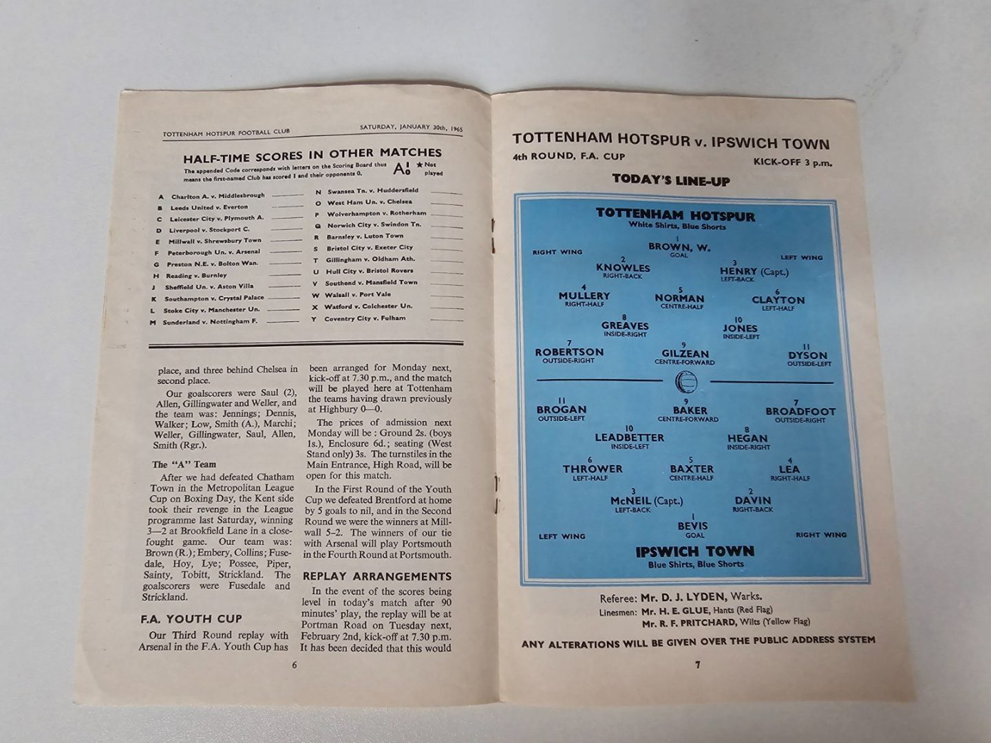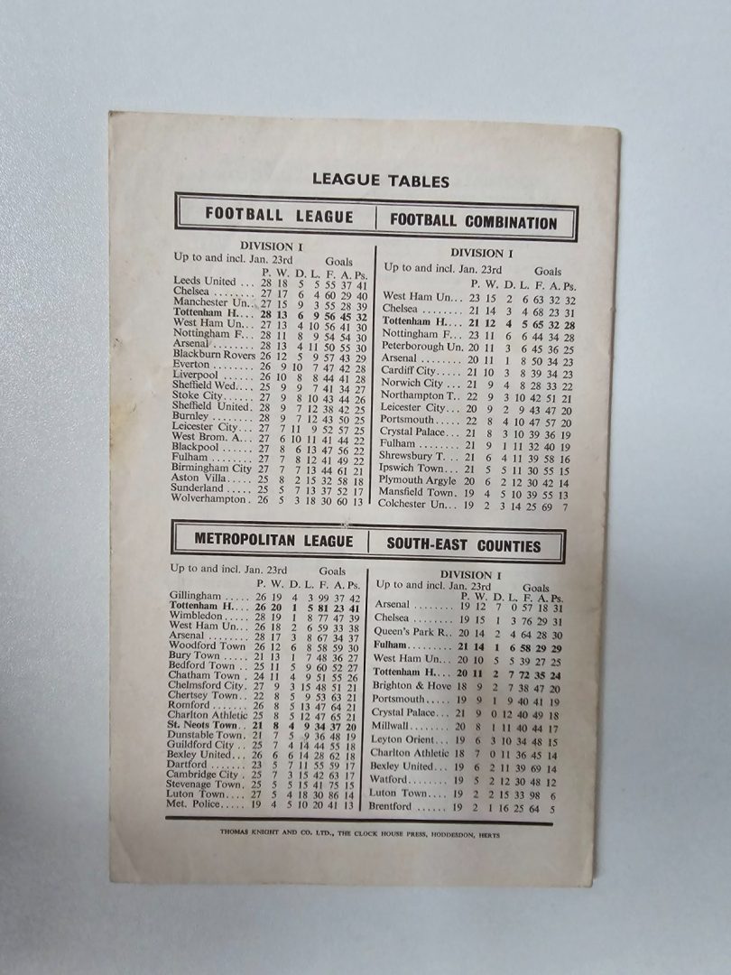1964/65 Tottenham Hotspur v Ipswich Town – 30th January