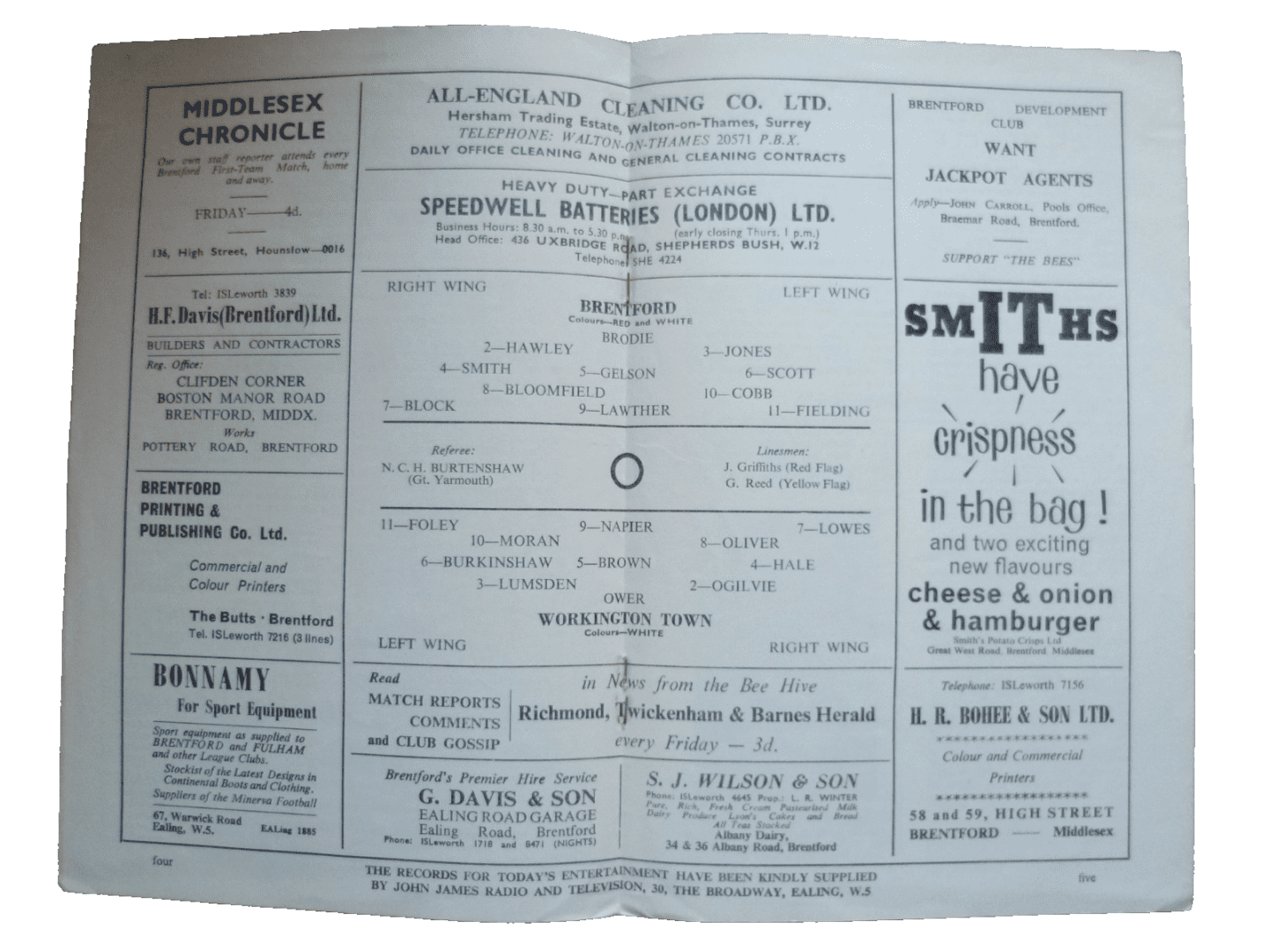 are buying a very collectable official football programme League 3rd Division- WORKINGTON & BRENTFORD, 7th April 1965