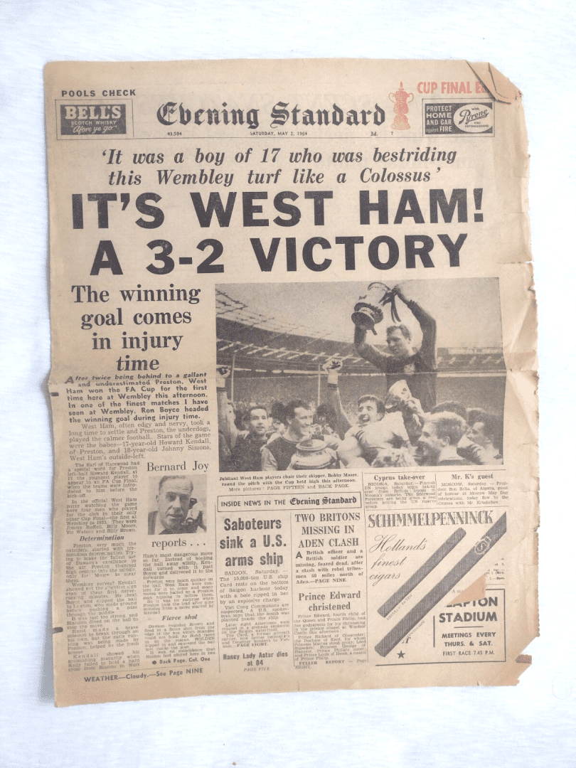 1964 Evening Standard 2nd May – It’s West Ham! 3-2 Victory Winning Goal ….Rare