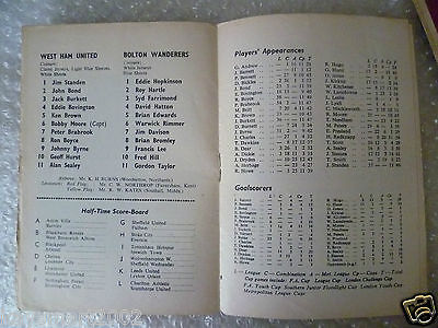 1964 Football Programme West Ham United V Bolton Wanderers, 4th April