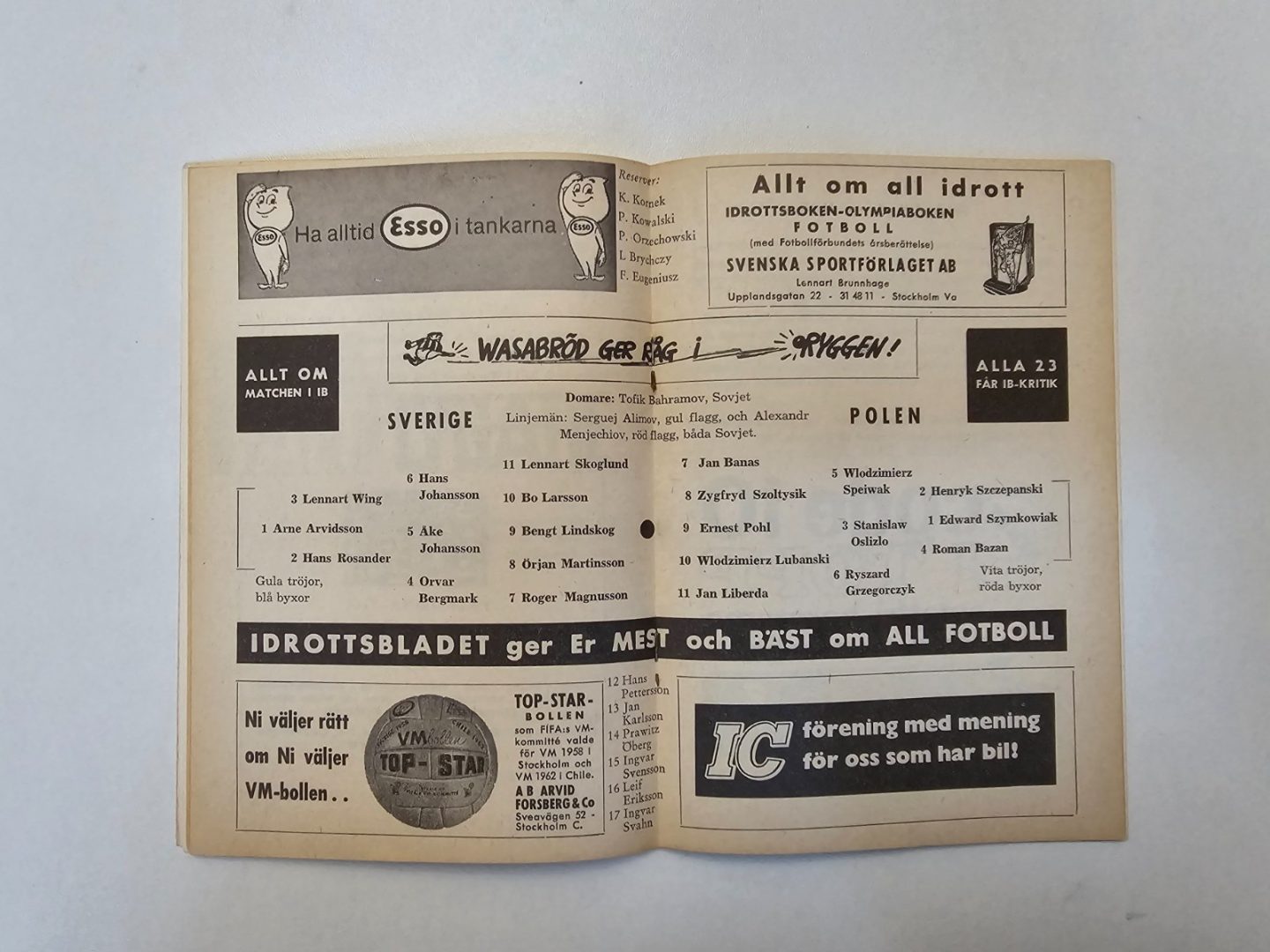 On sale is a football Programme As per the tittle. This is a matchday programmer from a football game between Sweden and Poland on October 7, 1964. The game was a friendly match and ended in a 3-3 draw. The match was played at RÃ¥sunda Fotbollstadion in Solna, Sweden. This lovely Original Programme remains in good condition considering its age. Please see the pictures as it forms part of the description.
