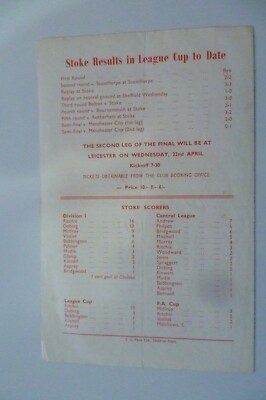 1964 League Cup Final Stoke City v Leicester City 1st Leg 15th April