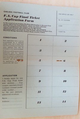 "The programme comes with the FA CUP FINAL TICKET APPLICATION FORM and remains in good condition for its age. Please see pictures as it forms part of the description."