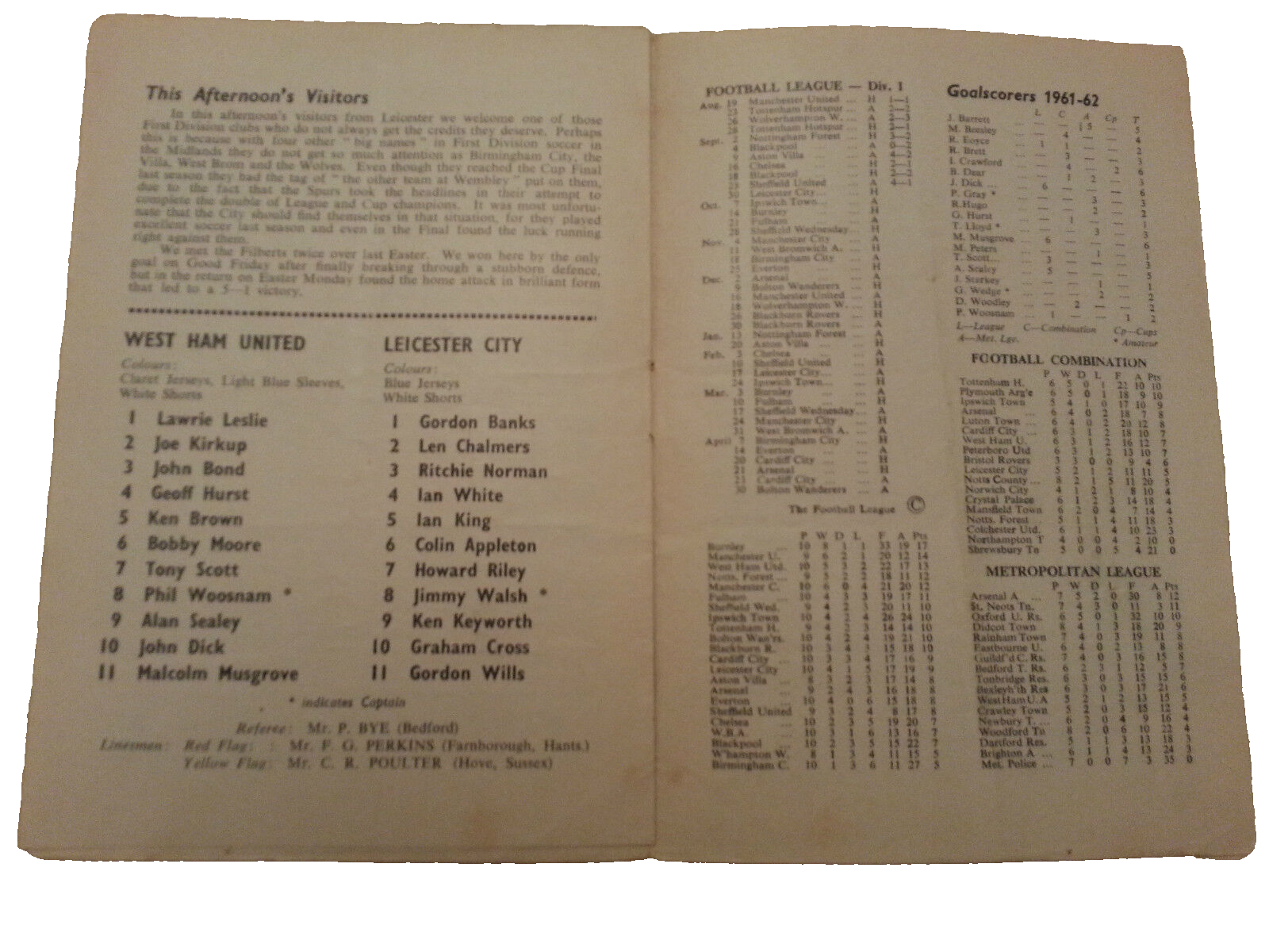 1965/66 Football League- WEST HAM UNITED v LEICESTER CITY – 11th September