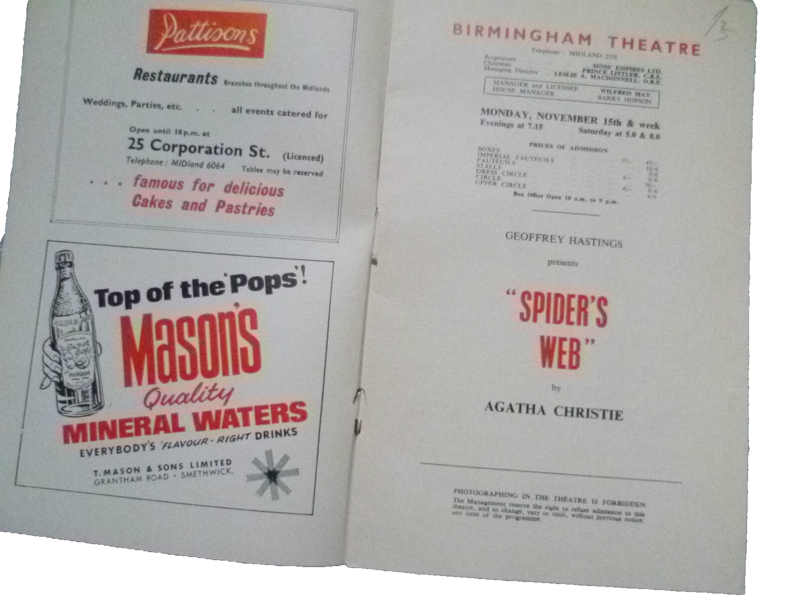 You are purchasing very collectable & Original programme.- 1965 Theatre Programme Agatha Christie’s Spider’s Web – Cicely Courtneidge Jack Hulbert Robertson Hare Jane Carr.