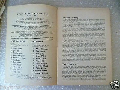 1965 WEST HAM UNITED v BURNLEY, 23rd Jan (League Division One)