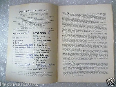 1965 WEST HAM UNITED v LIVERPOOL, 6th Sept (League Division One Programme)