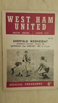 are purchasing the official football programme of: .1966/67 Football League WEST HAM UNITED v SHEFFIELD WEDNESDAY – 21st January