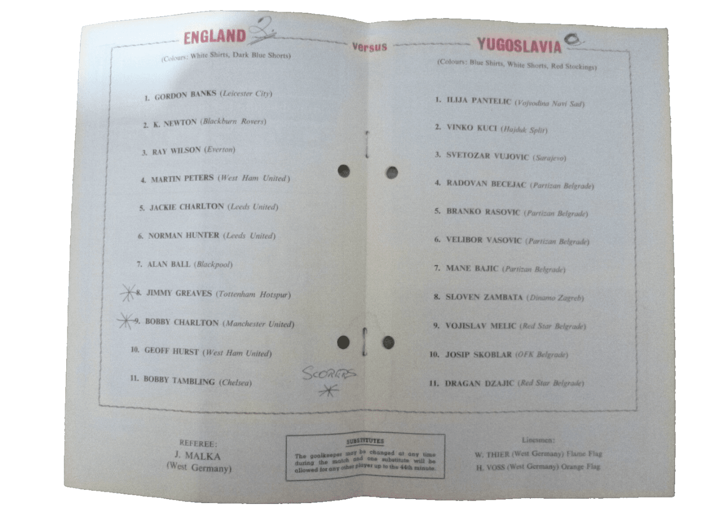 1966 Home Internationals – England v Yugoslavia, 4th May