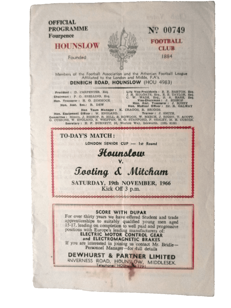 1966 London Senior Cup 1st Rd Hounslow v Totting & Mitcham, 19 November