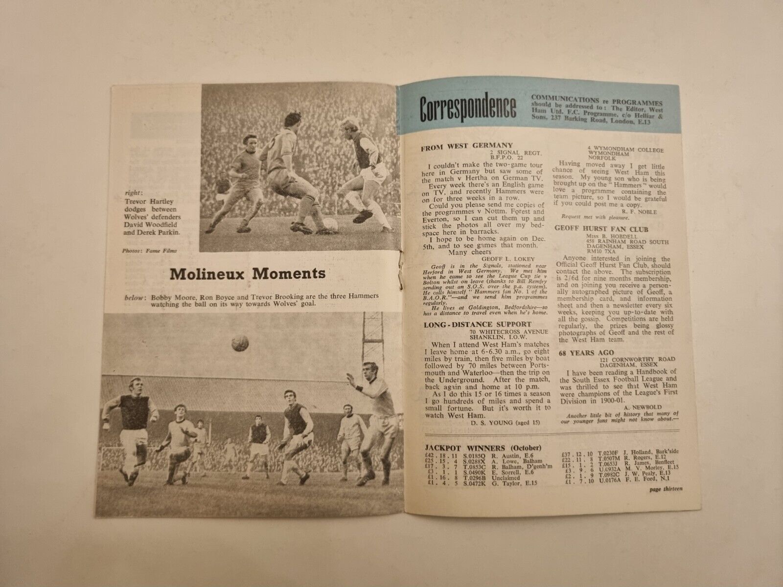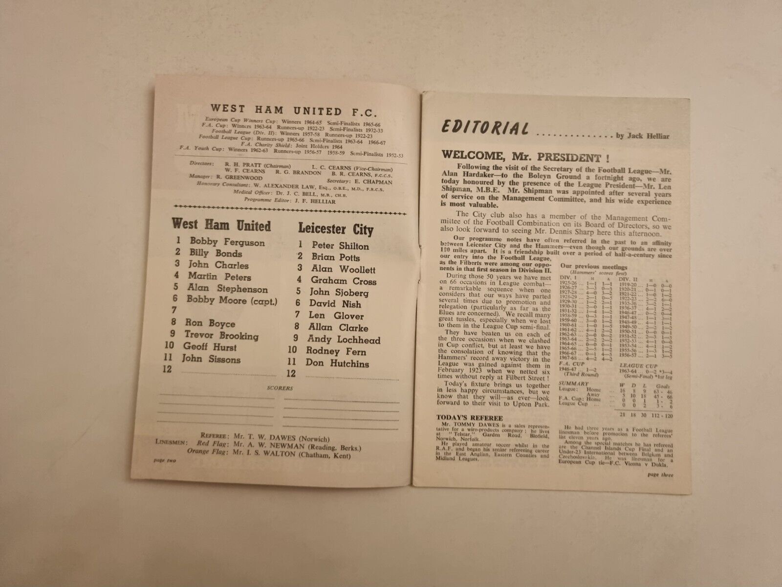 1968/69 WEST HAM UNITED v LEICESTER CITY – 16th November