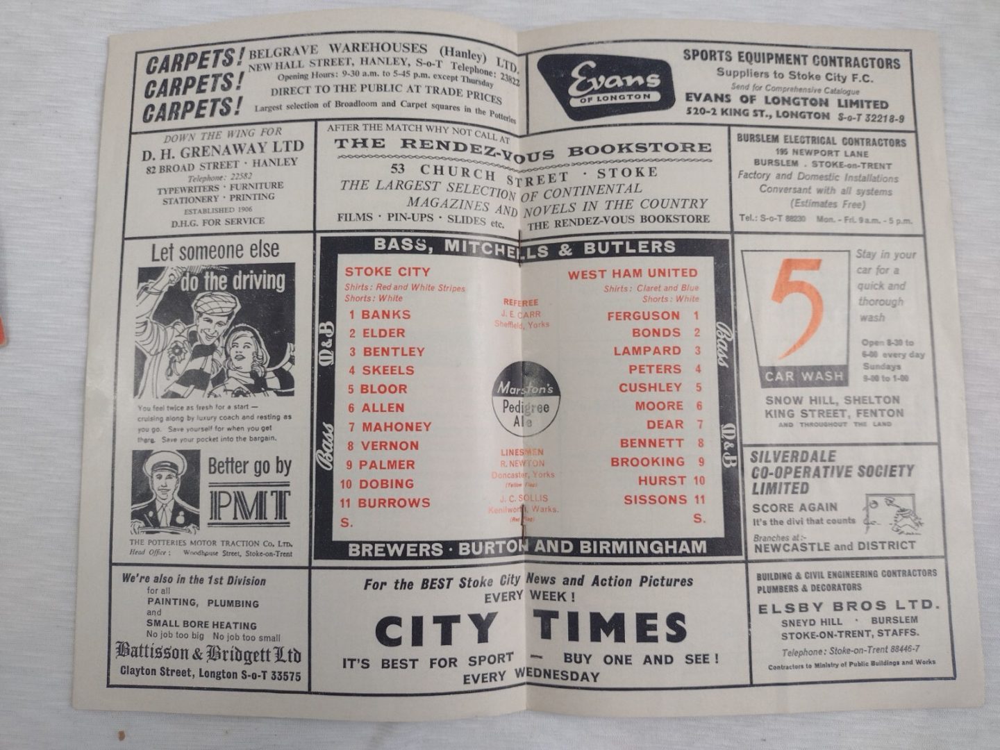 1968 Stoke City v West Ham United, 17th February FA Cup Official Programme