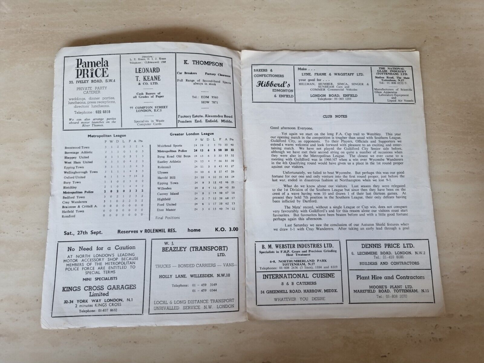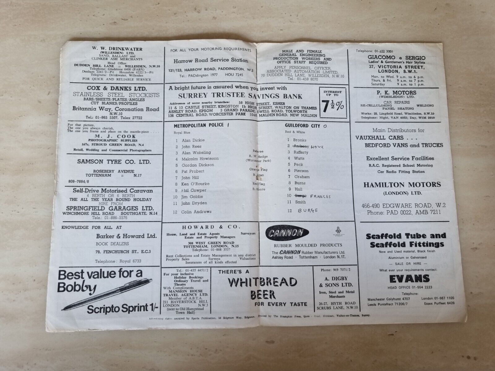 1969 FA CUP 1st Qualifying Round Metropolitan Police v Guildford City 20th Sept