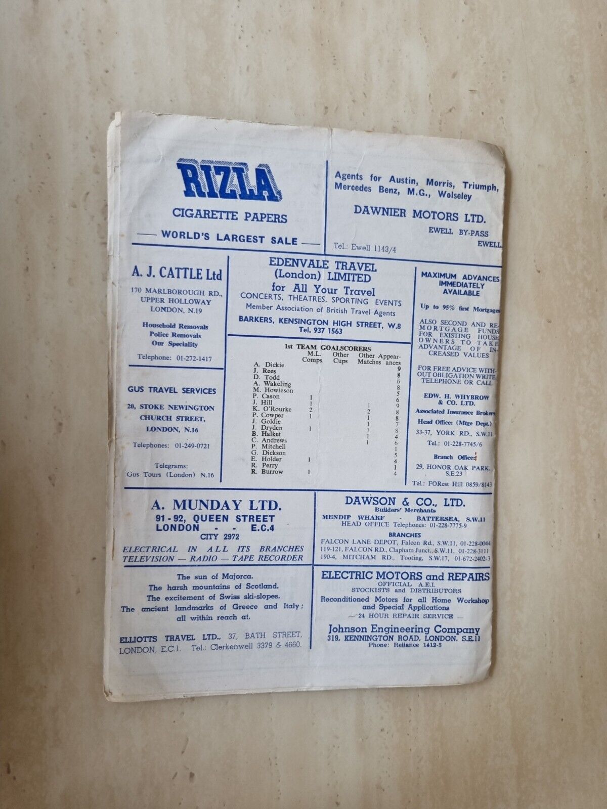 You are purchasing vintage & original Official Football Programme as per the tittle.