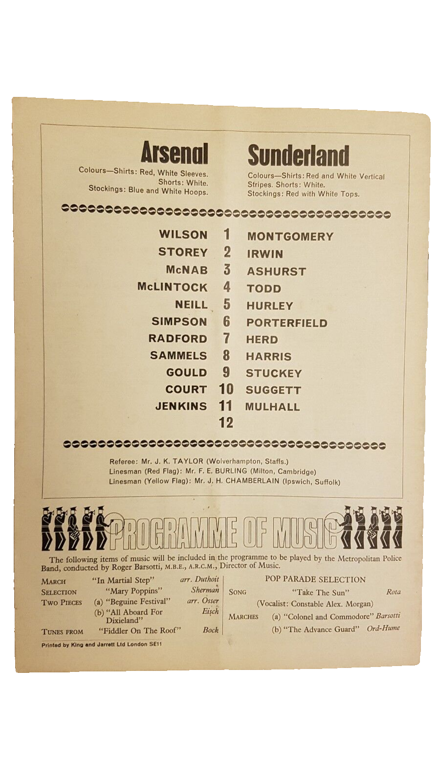 1969 League Cup Arsenal v Sunderland 2nd Round 4th September