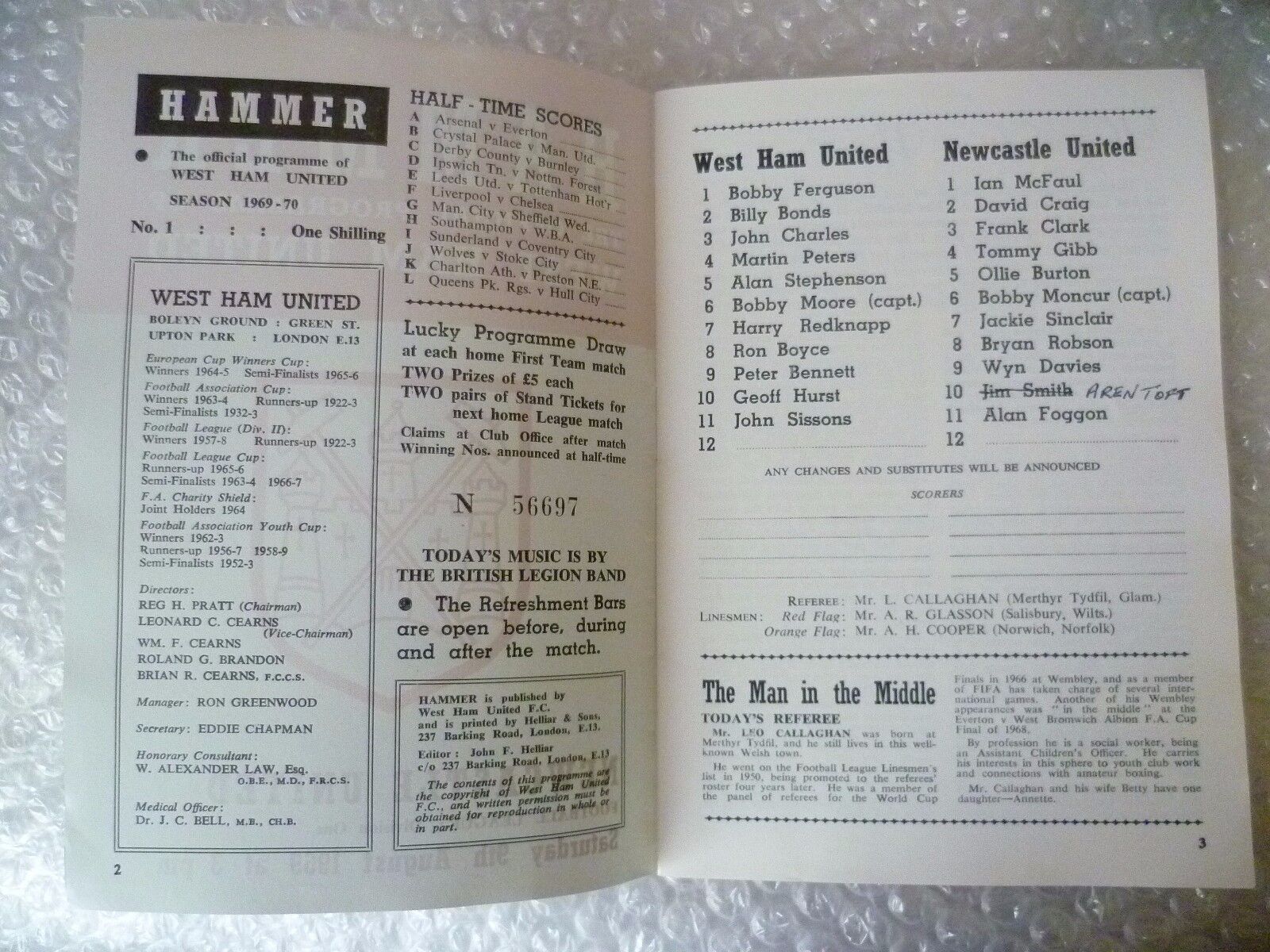 1969 WEST HAM UNITED v NEWCASTLE UNITED, 9th Aug (League Division One)