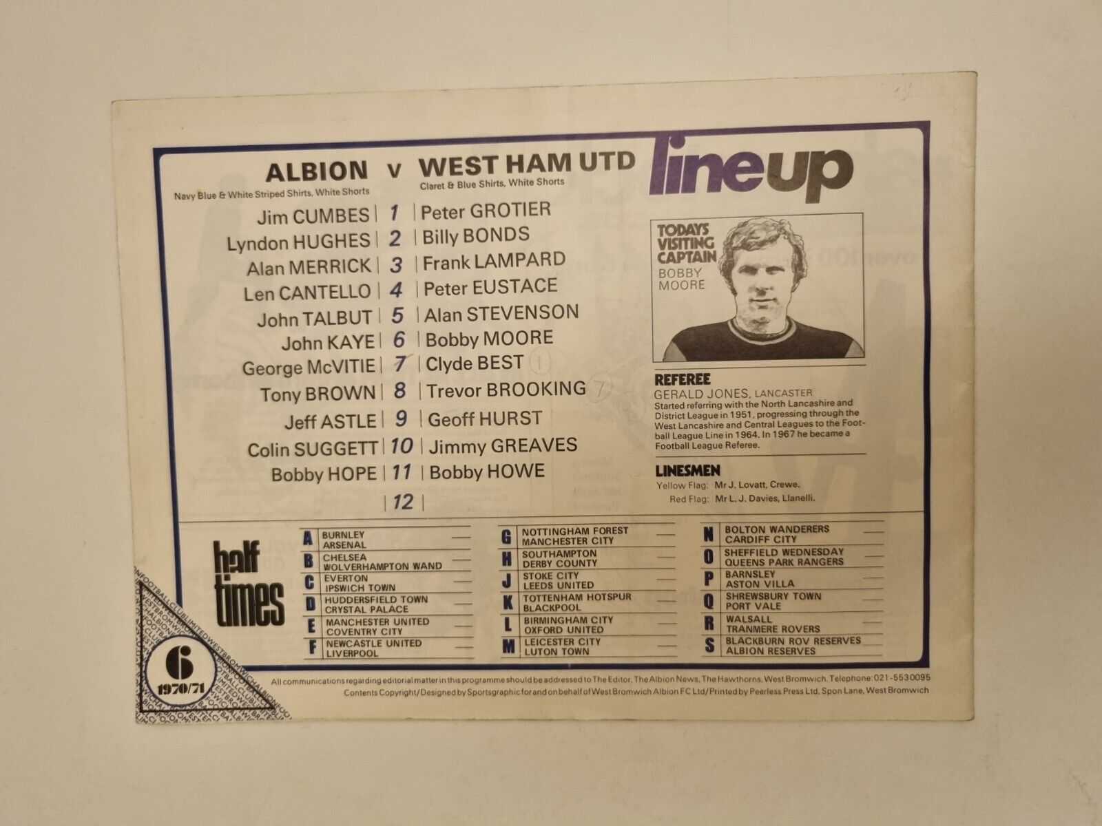 1970/71 West Bromwich Albion v West Ham United – 12th September