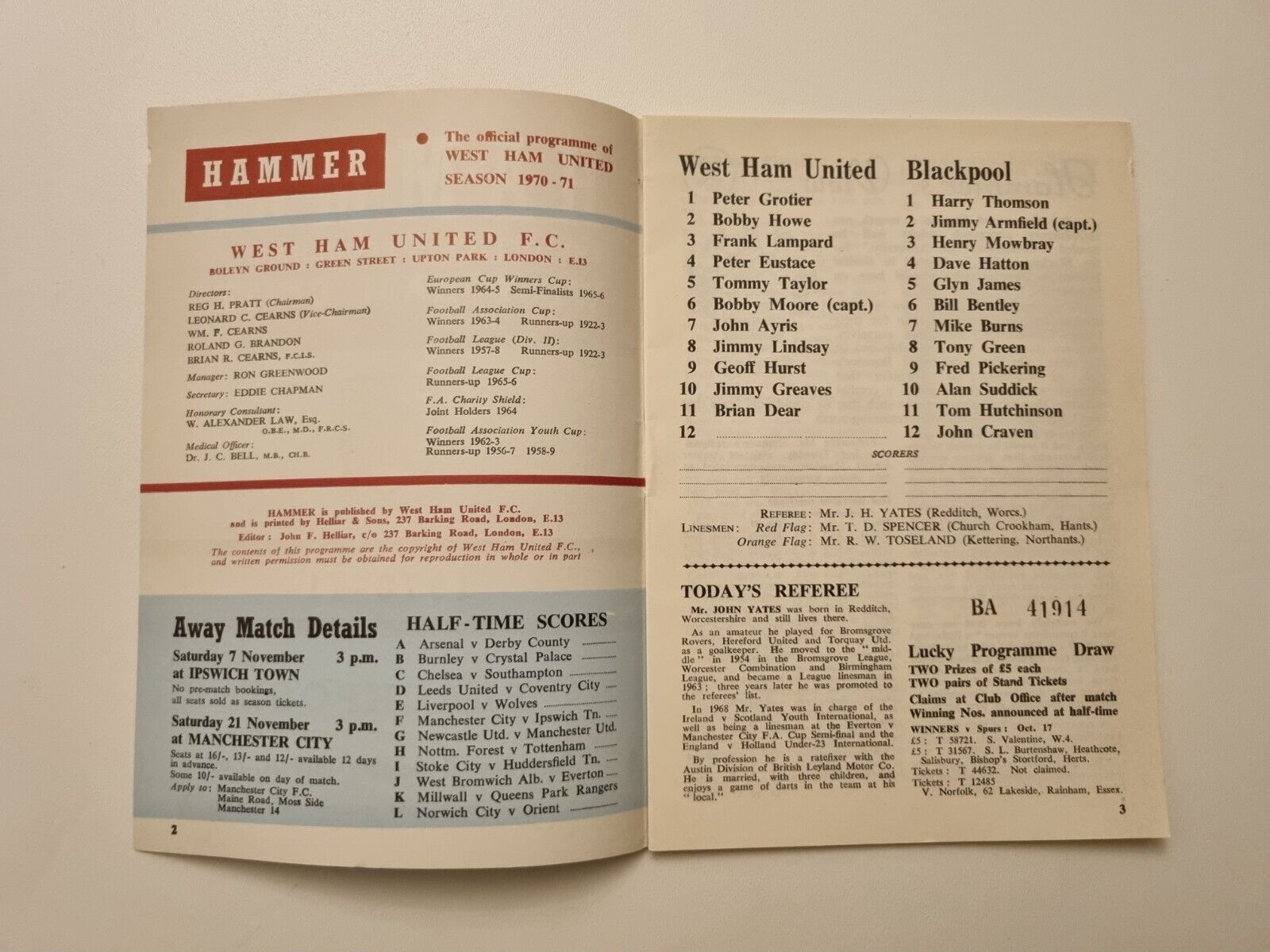 1970/71 West Ham v Blackpool – 31st October