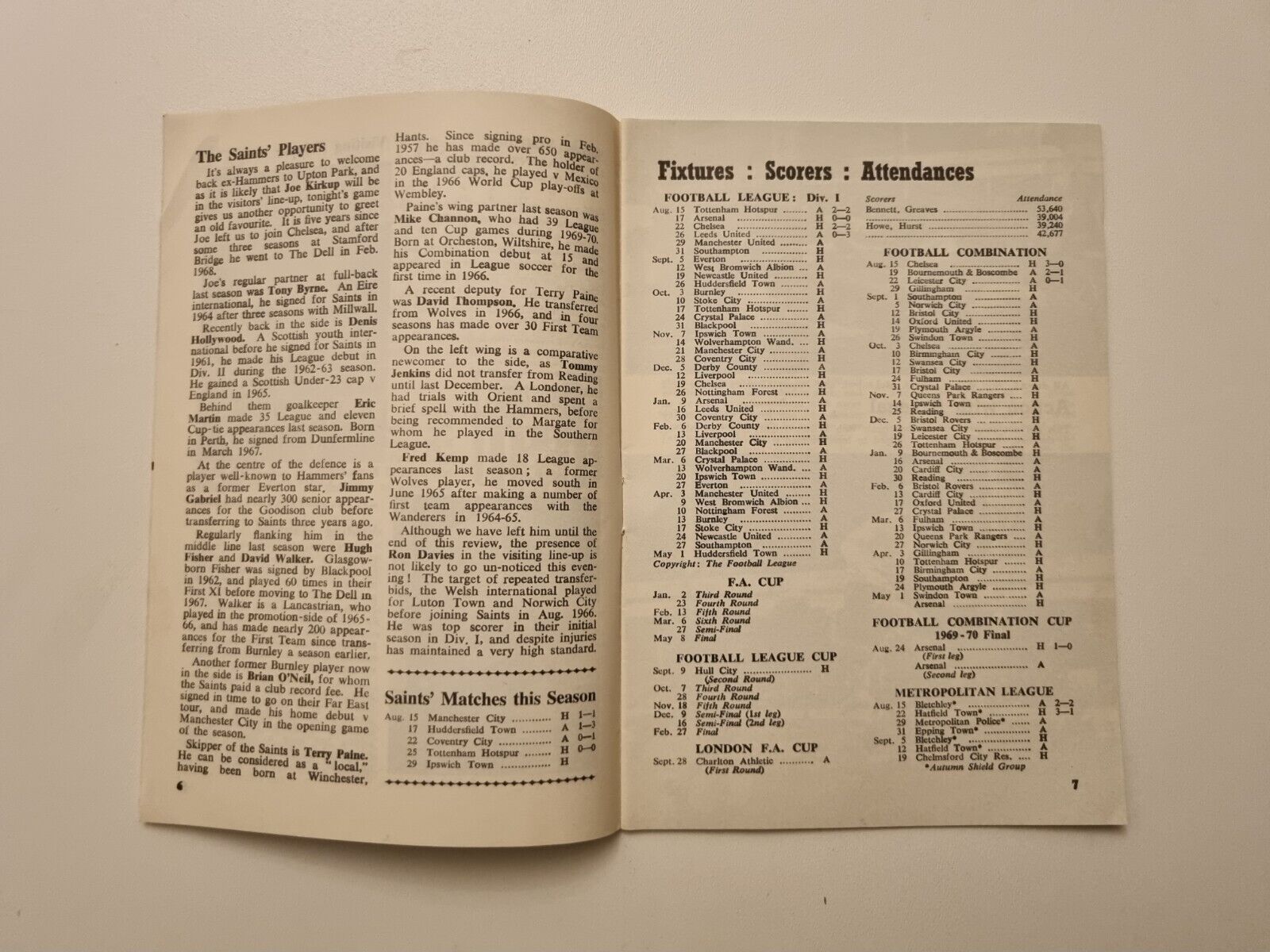1970/71 West Ham v Southampton – 31st August