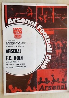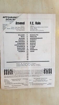 1970 Arsenal v FC Koln 9th March European Cup 4th Round 1st Leg with Coupon