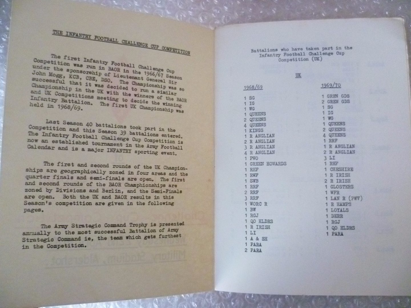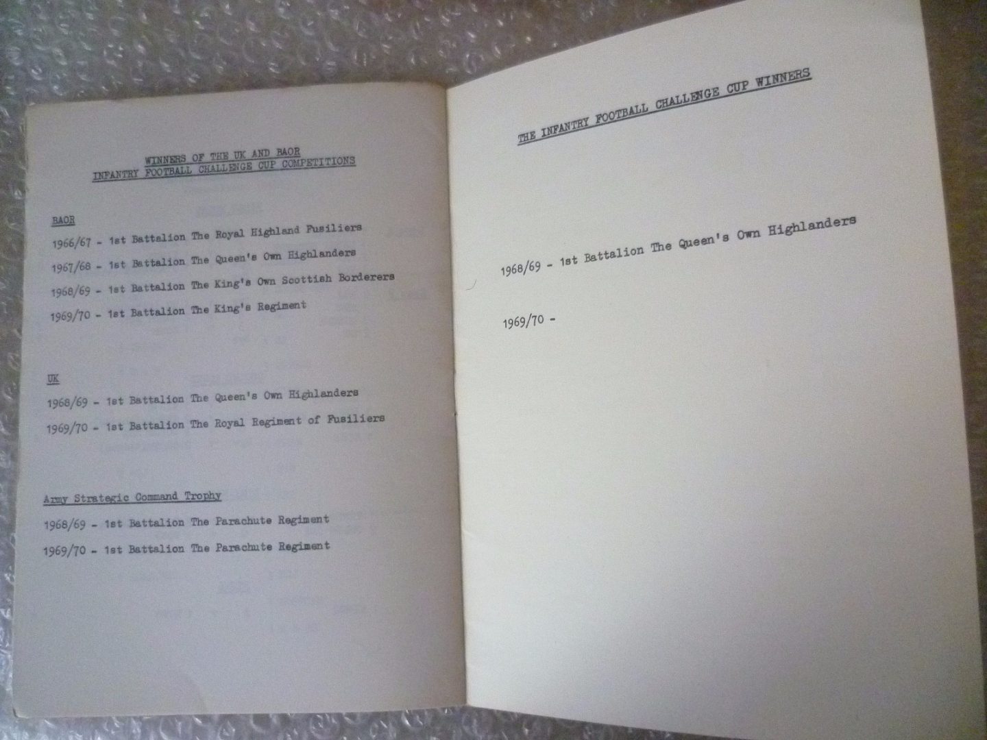 You are purchasing vintage & Original football Programme. 1970 The Infantry Football Challenge Cup FINAL- 1st Batt Royal Regt Fusiliers v 1st Batt Kings Regt. Please Check out my other items!