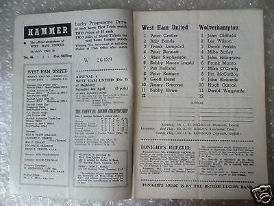1970 Football League WEST HAM UNITED v WOLVERHAMPTON WANDERERS, 31 March