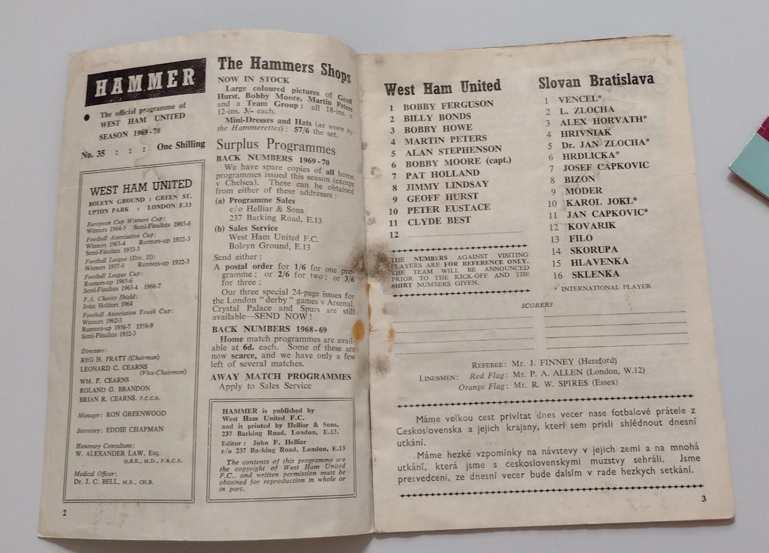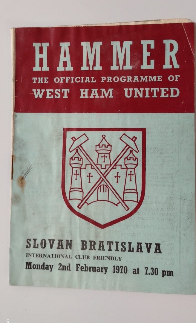 1970 West Ham v Slovan Bratislava 2nd Feb International Friendly