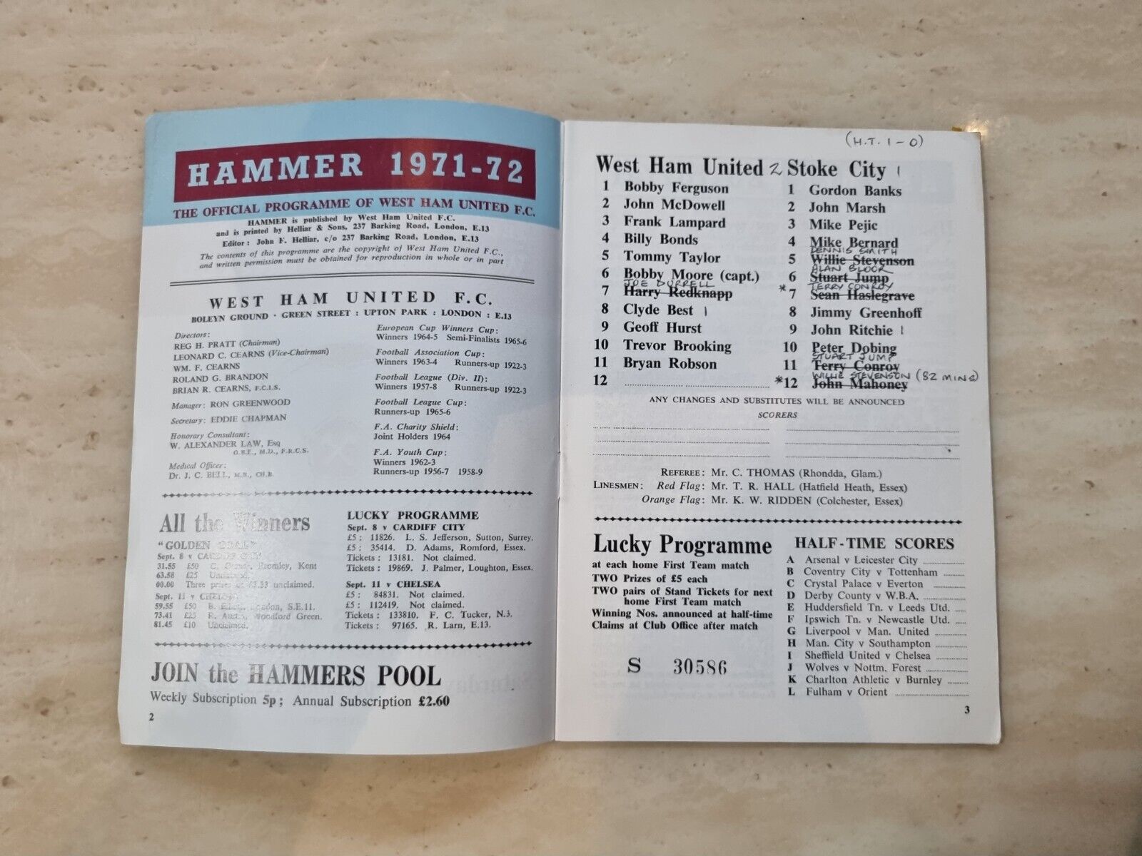 1971/72 West Ham United v Stoke City – 25th September