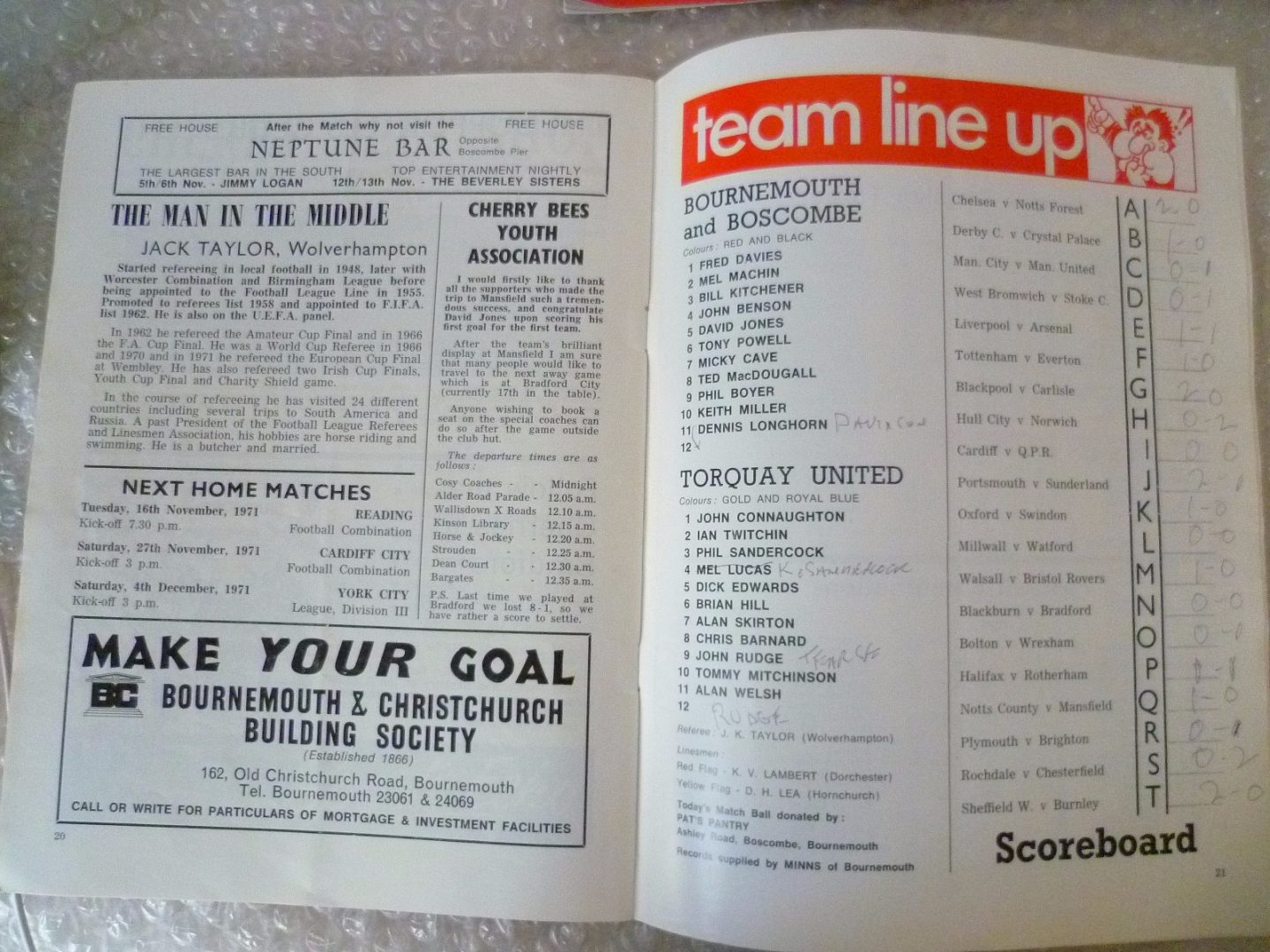 1971 BOURNEMOUTH & BOSCOMBE v TORQUAY UNITED, 6th Nov (League Division Three)